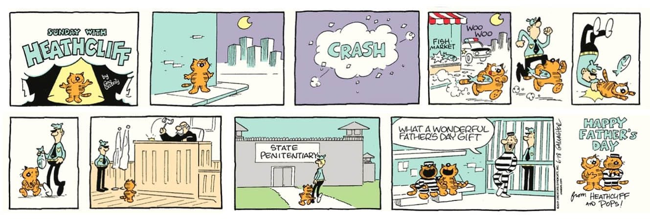 Iako ga se mi sjećamo po crtanoj seriji Maksim (tj. Heathcliff) je prvenstveno humorističan strip autora George Gatelya iz 1973. godine. I dan danas izdaje se u više od 1000 novina diljem svijeta, a piše ga i crta Peter Gallagher, Gatelyjev suradnik. Zbog nekih sličnosti Maksima se često mijenja s mnogo poznatijim Garfieldom, obje mačke su narančaste s crnim prugama i poznate po svom čudnjikavom karakteru. No glavna razlika je ipak u njihovom životnom stilu. Dok Garfield najviše voli jesti i spavati po cijele dane, Maksim ima više aktivan i različito ispunjen dan. Zanimljivo, iako je Garfield mnogo poznatiji i više komercijalan mačak, Maksim ga je zapravo tukao popularnošću i na malim ekranima i po novinskim stranicama. Među raznim poznatim mačkama (Felix, Tom, Sylvester) s malih ekrana Maksim se izdvaja frajerskim stavom. Njegov sumnjivi pedigre, želja za nevoljama, ravnodušno ponašanje i stav buntovnika bez razloga zagarantirao mu je dugogodišnju slavu. Iako se Maksimov neobuzdan karakter mijenjao kroz vrijeme, nikada nije izgubio svoj neodoljivi šarm kojem je potpomagao i Mel Blanc, legenda koji je posuđivao glas mnogim slavnim crtanim likovima.