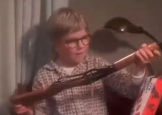 Kad božićno jutro napokon stigne Ralphie uzbuđeno otvara paketiće ispod bora. Njegova majka je oduševljena poklonom za Ralphia kojeg je poslala teta, dok je on razočaran jer nije dobio ono što je htio više od svega. Nakon što otvori sve poklone ipak uoči i sakriveni dar koji sadrži pušku! Ralphie oduševljen ode van i metalni znak vidi kao idealnu metu za pucanje. Metak se odbije i vrati prema Ralphiju i slomi mu naočale. Dok traži naočale i razmišlja da li se majčino upozorenje o izbijanju oka zbilja ispunilo, stane na njih i slomi ih. Odluči slagati majci kako je ledenica s krova pukla i pala ravno na njega, a majka mu začudo povjeruje. U zadnjoj sceni Ralphie leži u krevetu s puškom pored njega, dok glas njega kao odrasle osobe govori kako je to bio najbolji dar kojeg je ikad primio.